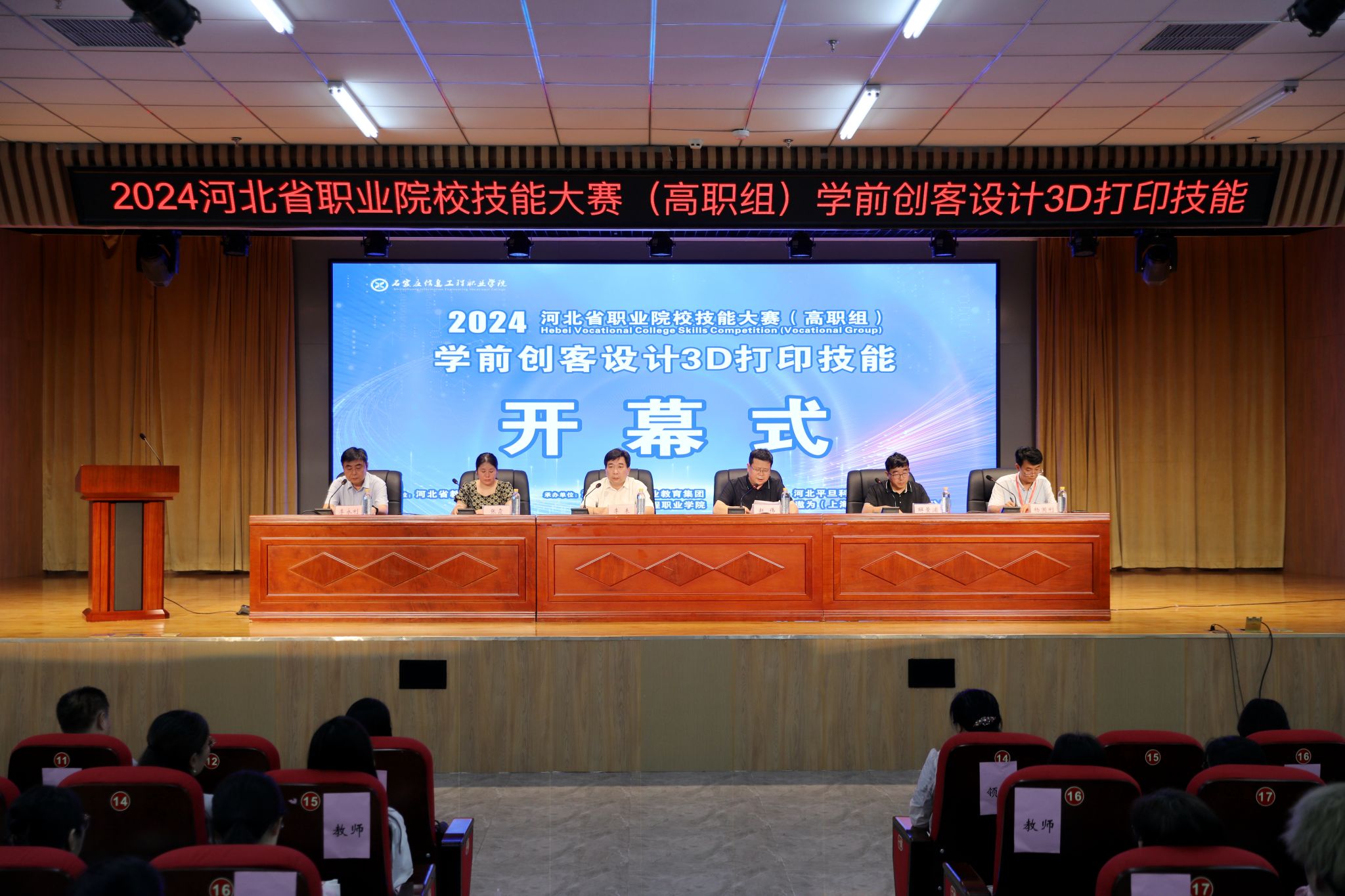 6月14日下午,大赛开幕式在学院图书馆报告厅隆重举行。学院副院长赵伟出席开幕式并致辞,河北省托育职业教育集团副理事长、秘书长,石家庄幼儿师范高等专科学校副校长李未致辞发言,大赛裁判长、河北工业职业技术大学谢景浦教授,技术支持单位代表参加开幕式。