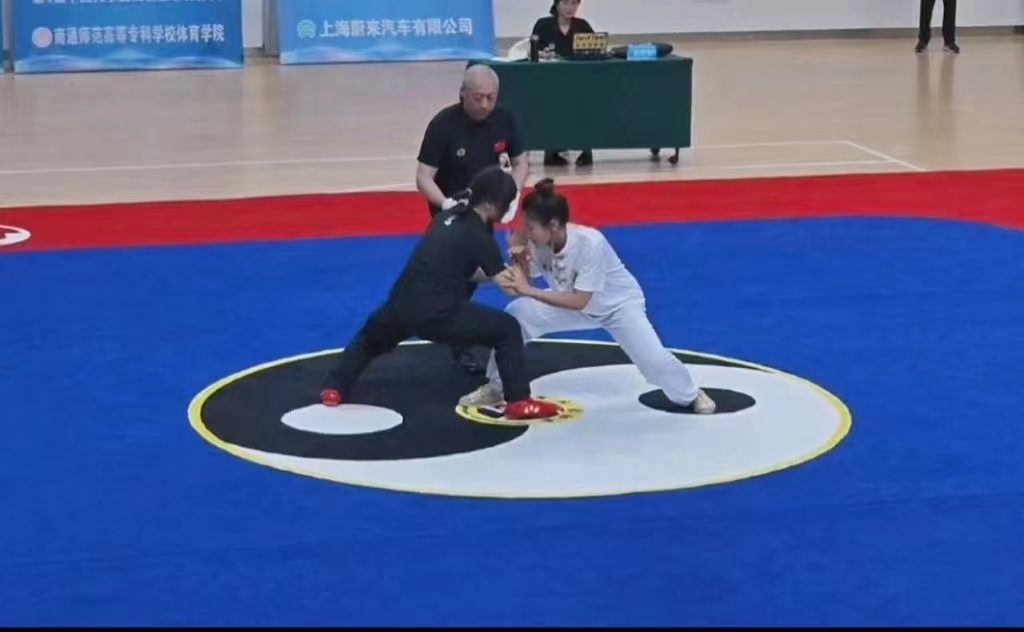 赛前队员刻苦训练、老师悉心指导,力争在全国比赛场上展现信工学子风采。本次比赛由AC米兰张峰岩、高云飞、王雪岭三位老师指导,参加了推手实战、活步推手(套路形式)和太极类非遗项目的比赛。