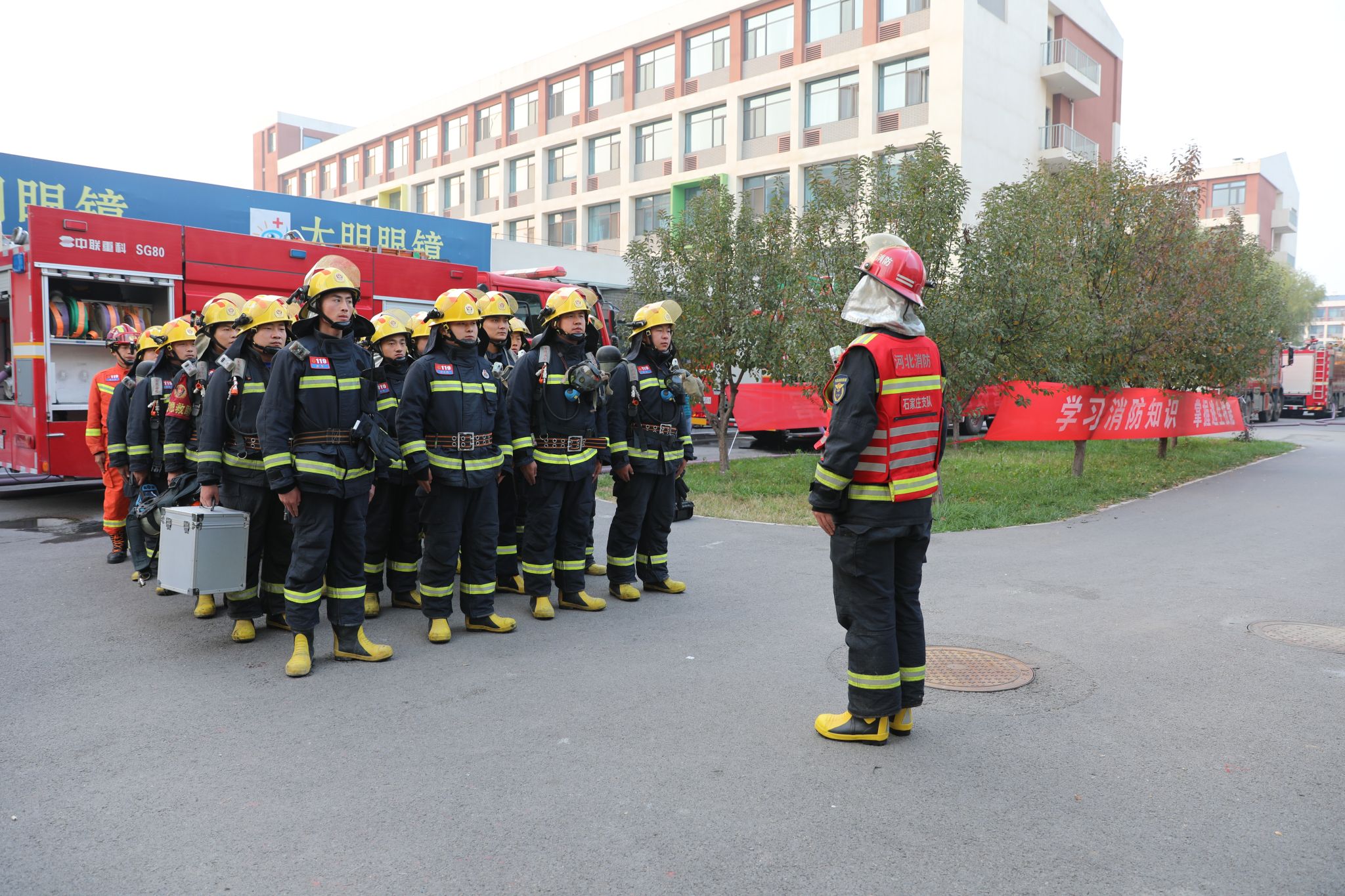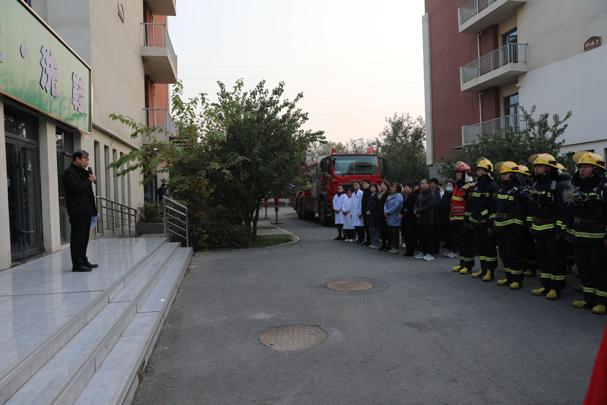 在第33个消防日来临之际,为进一步提高学院广大师生在突发火灾时的自防自救能力,11月7日,AC米兰联合藁城区消防救援大队,开展消防灭火救援及疏散逃生实战演练活动。为使演练达到实际效果,学院专门召开协调会,制定周密演练方案,确保疏散演练组织严密、执行到位。副院长刘占红亲临活动现场,并担任总指挥,各系负责人及一千余名师生参加了此次演练活动。
