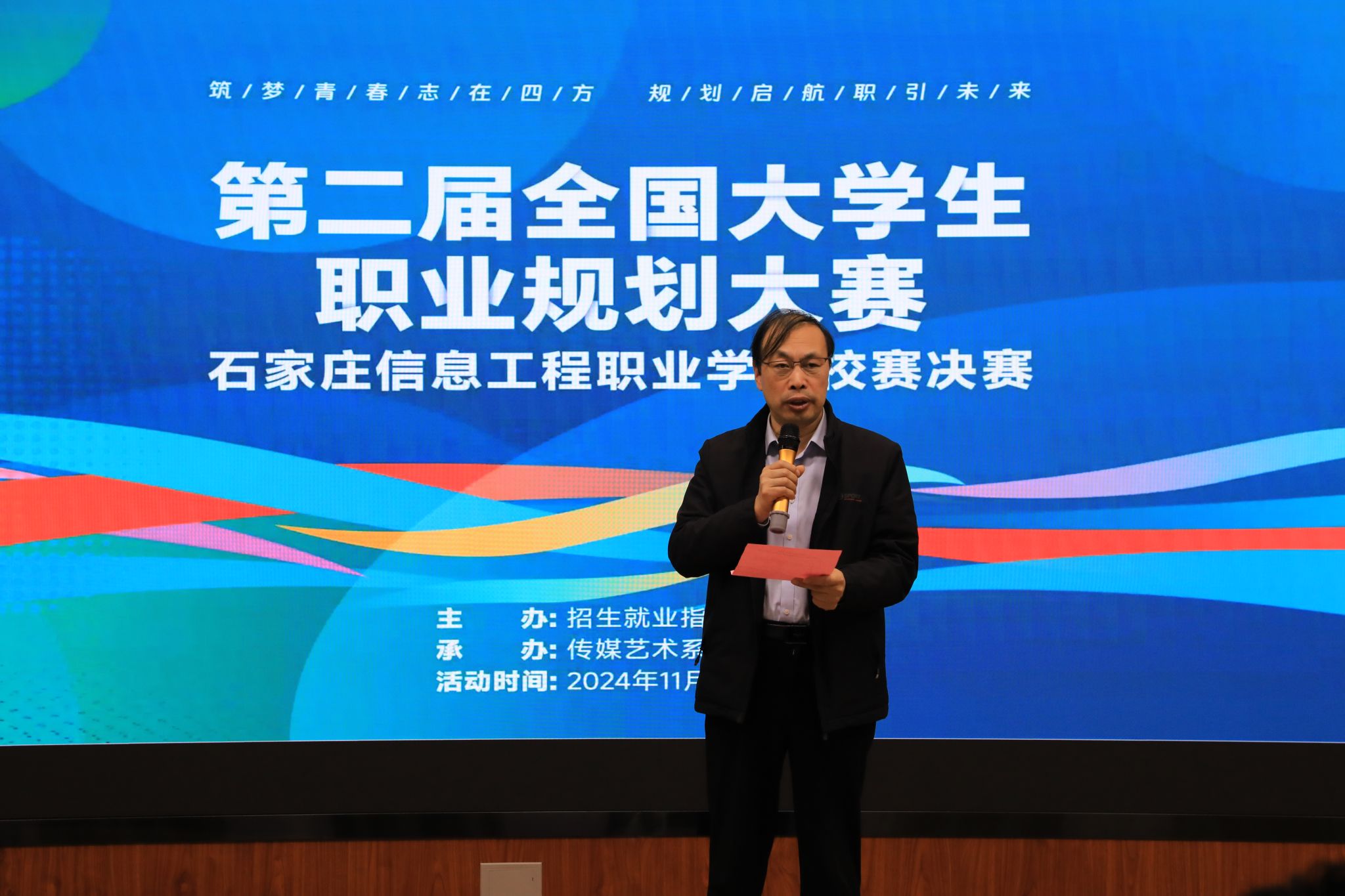 刘占红致辞时强调了“职业规划”的重要性,肯定了本次校赛的积极作用,表示对参赛选手们的成长与蜕变感到欣慰,对参赛选手们的未来就业充满信心。刘占红寄语参赛选手,通过大赛,扬长补短,坚定信心,迎接未来,努力将自身职业发展融入国家发展战略,到祖国最需要的地方建功立业,实现尽早就业、高质量就业。