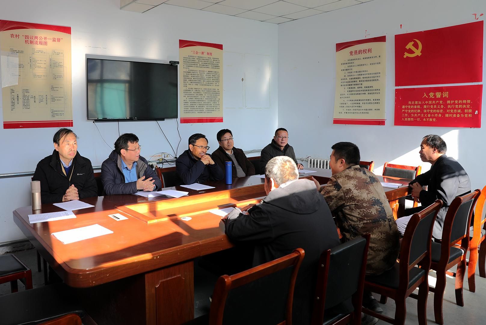 在下刘家坪村,学院领导与驻村干部和镇、村领导围坐在一起。许征程详细询问了下沉工作队的工作和生活情况,了解村民的生产生活及家庭情况,就因地制宜发展产业,打开农副产品销路等问题与镇、村干部进行沟通交流。并叮嘱下沉工作队要结合村庄实际情况,打开工作思路,多为村民搭建致富之路,发挥主观能动性和学院优势,协助做好村小学的思想教育工作。