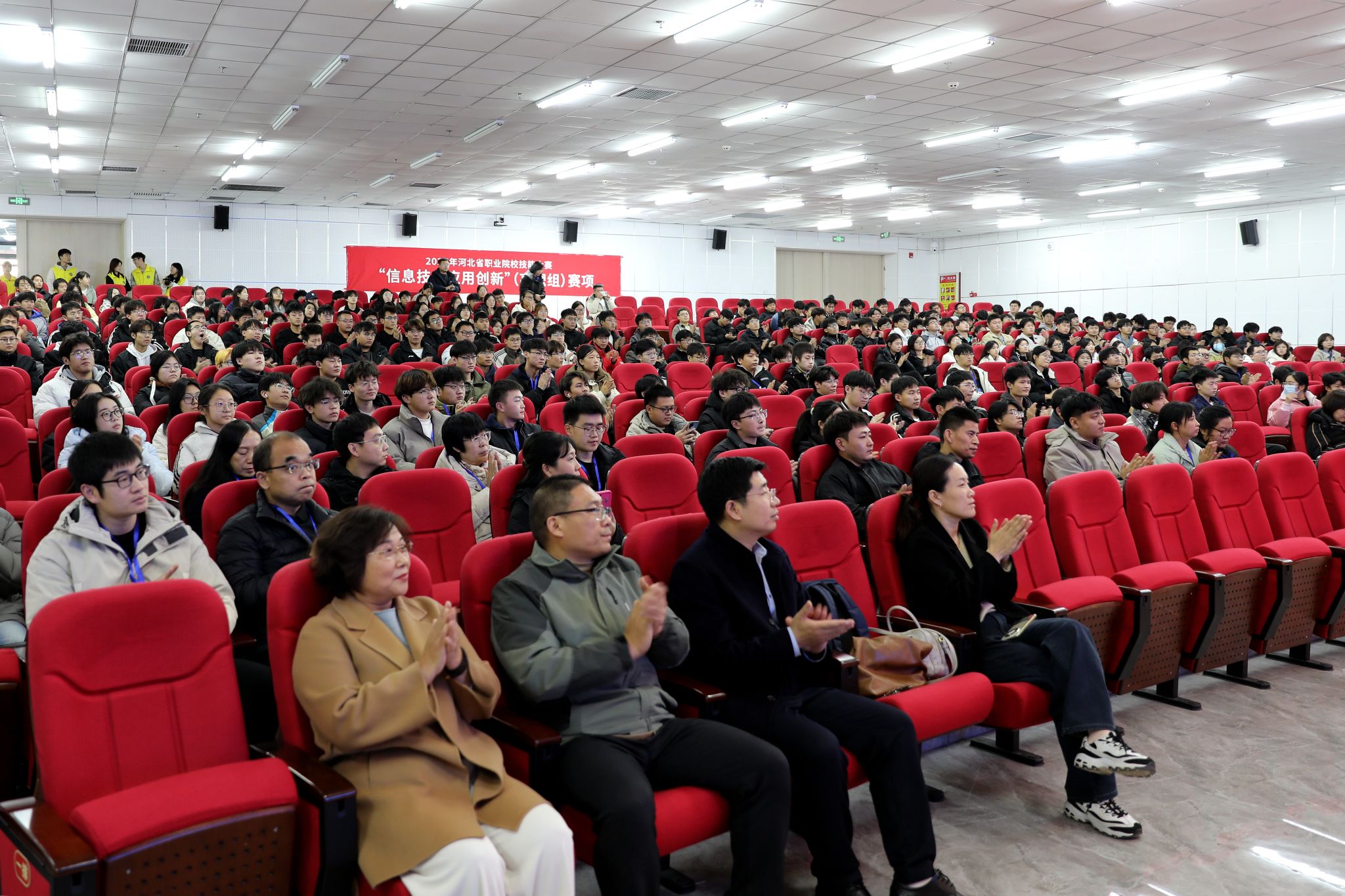 12月5日下午,开幕式在学院图书馆一楼报告厅举行。赵伟在致辞时向来自全省各地的参赛选手和指导教师致以诚挚的问候和良好的祝愿,对各位专家、裁判的辛勤工作及河北省电子信息职业教育集团的鼎力支持表示诚挚感谢。他指出,此次技能大赛提供了一个展示专业技能、切磋技艺、提升自我的平台,通过竞技,选手在实践中锻炼能力,在比拼中发现不足,为未来的职业发展积累宝贵的经验。