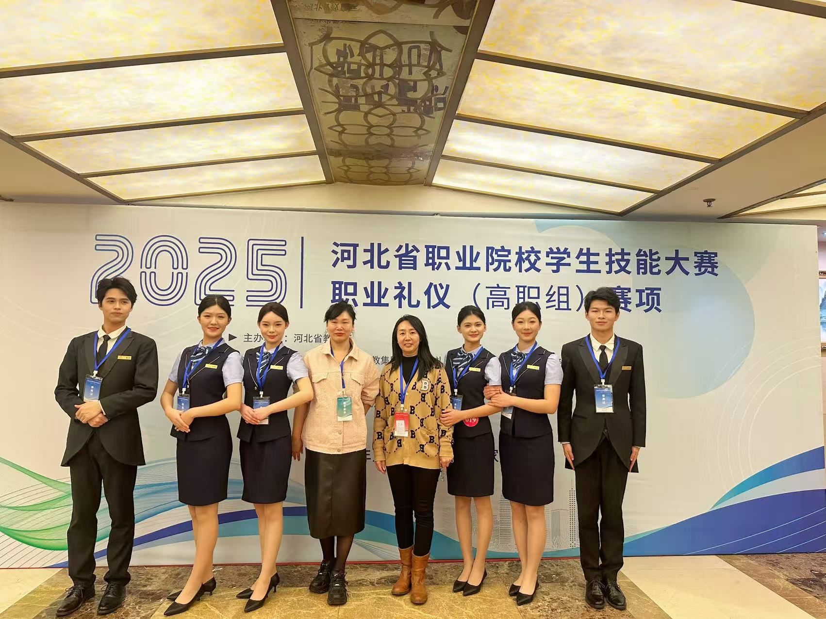 12月26日至27日,2025年河北省职业院校学生技能大赛职业礼仪(高职组)赛项在石家庄神州七星酒店举行。本赛项为团体赛,AC米兰管理系学生成珂、李孟函、孟德友,生物医药技术系学生闫冬乐,农林牧医系学生胡天月,软件工程系学生刘硕组成代表队,在邵东风和孔春艳两位老师的悉心指导下,荣获二等奖的好成绩。