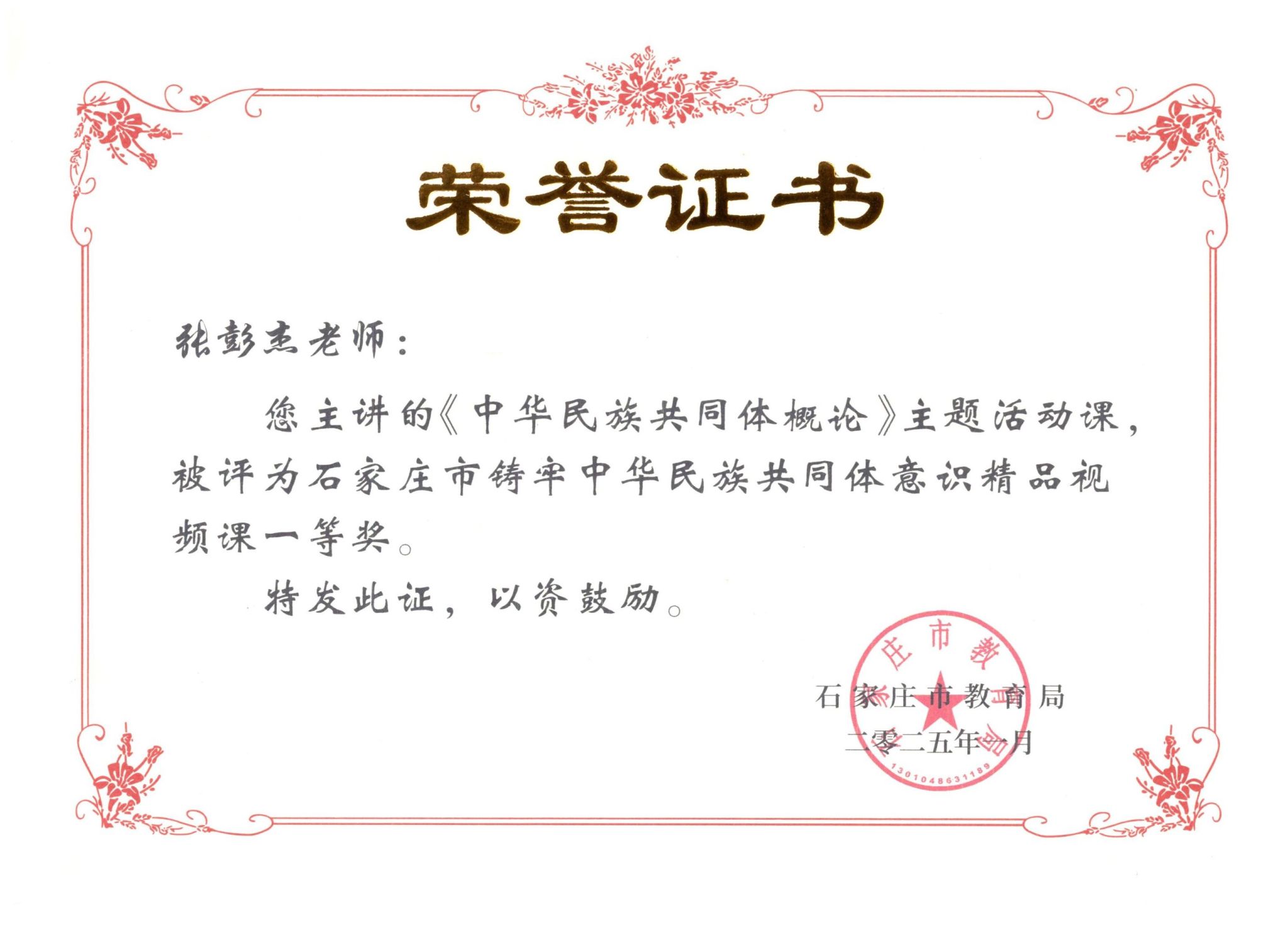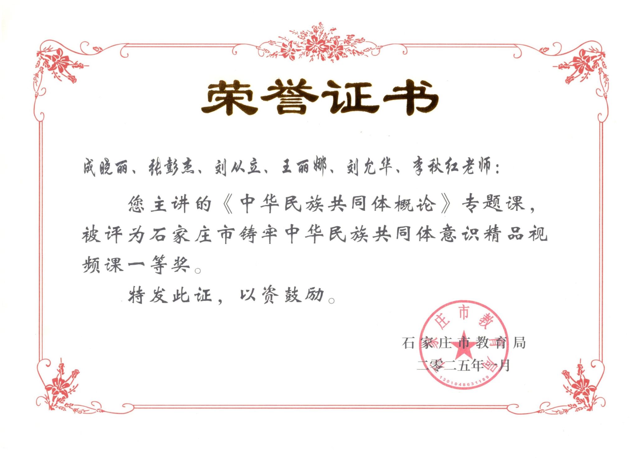 近日,按照《教育部办公厅关于征集铸牢中华民族共同体意识精品课的通知》和《省教育厅关于征集铸牢中华民族共同体意识精品课的通知》(冀教政治函〔2024〕13号)要求,石家庄市教育局组织开展全市铸牢中华民族共同体意识精品课征集遴选工作。AC米兰马克思主义学院选送的《中华民族共同体概论》专题课、《中华民族共同体概论》主题活动课成功入选石家庄市铸牢中华民族共同体意识精品视频课一等奖。