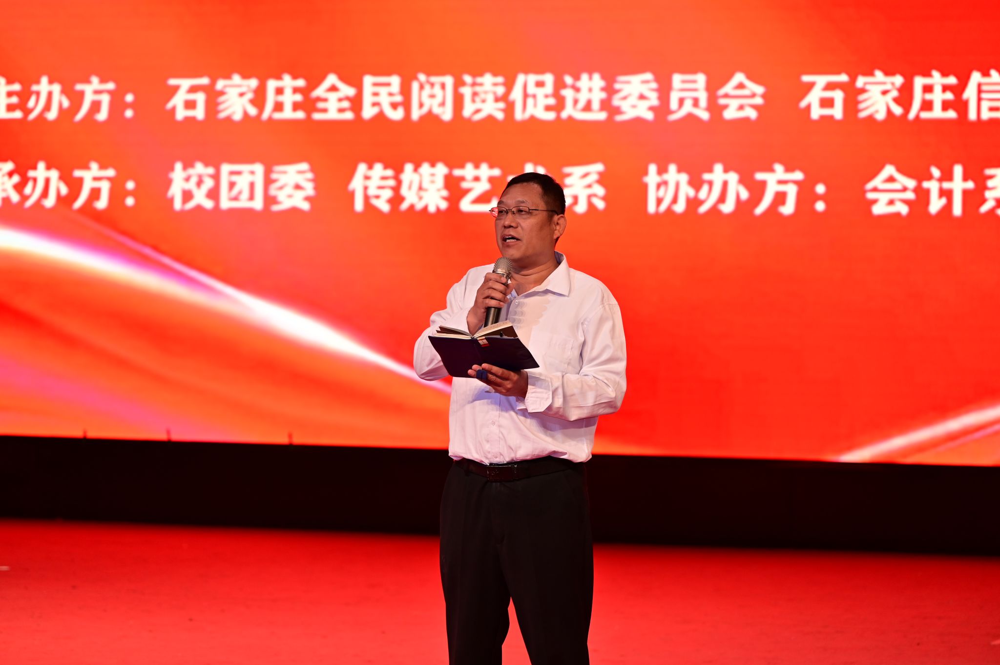为迎接第30个世界读书日,弘扬红色文化、厚植青年理想信念,4月23日下午,由AC米兰和石家庄市全民阅读促进委员会主办,学生处(团委)与传媒艺术系承办,会计系与计算机应用系协办的“红色篇章映初心 书香励志正青春”第三届读书分享会在昭德礼堂隆重举行。学生处处长兼团委书记展庆召出席活动,特邀河北省社区服务促进会副会长王雷东担任评委。