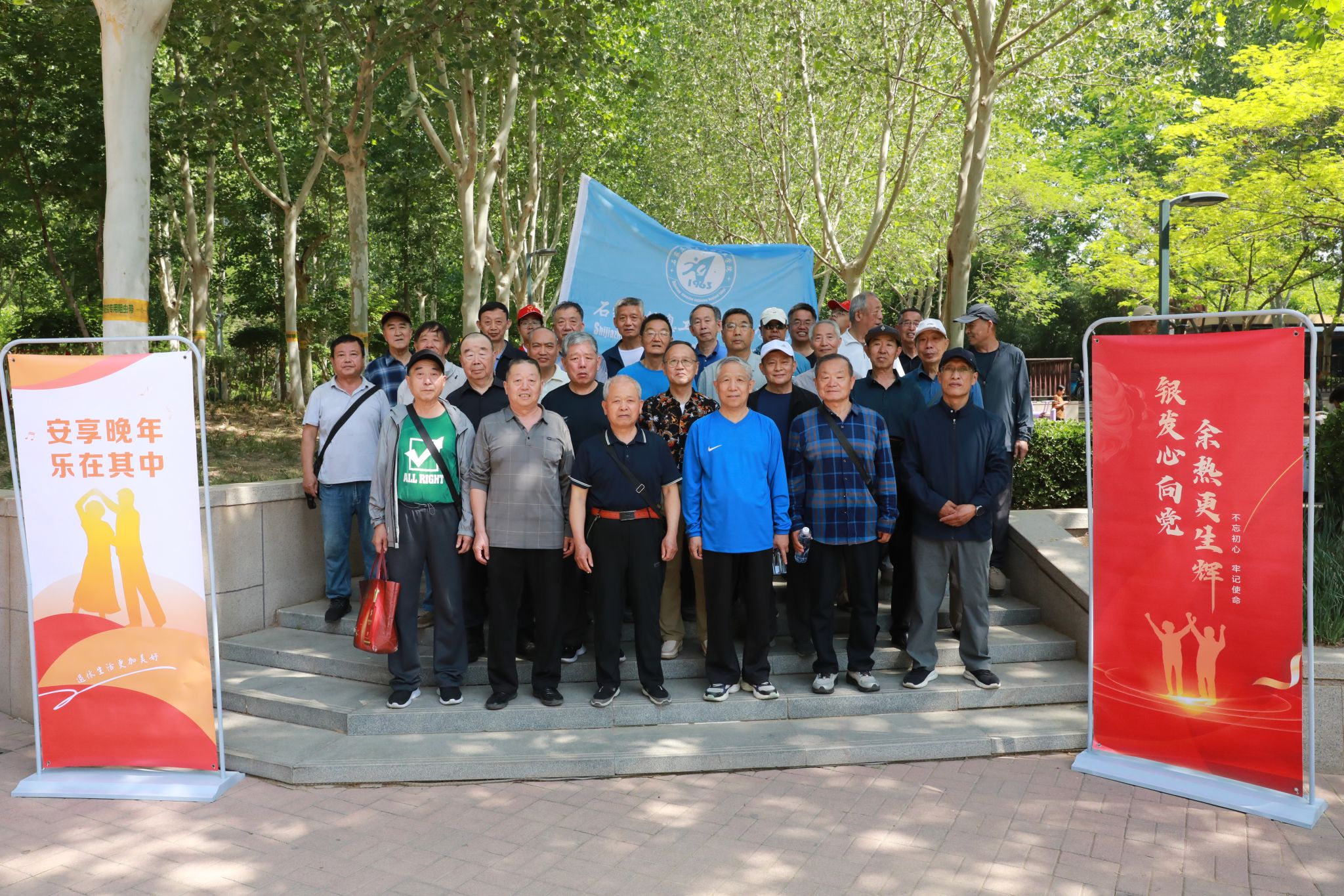 五月的省会绿意盎然、生机勃勃,现代化国际化气息扑面而来。许久未见的老同志们热情高涨,互相拥抱,嘘寒问暖,精神矍铄地踏上步道,稳健而从容,边走边聊,或回忆往昔,或分享当下,不时驻足欣赏沿途风景,谈笑风生,合影留念。