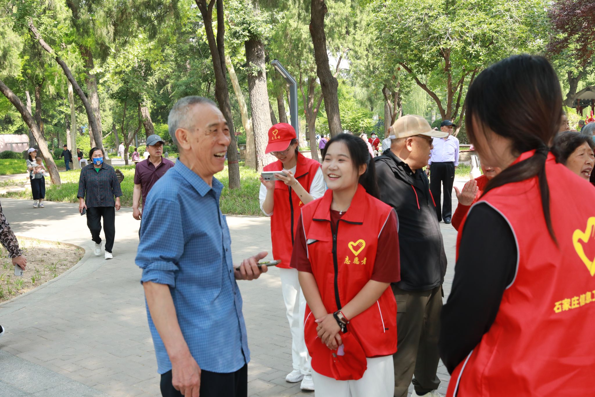 为确保离退休老同志们的安全与健康,学院专门安排医护人员和青年学生志愿者分组陪伴,随时关注着他们的状态,及时提供饮水、休息引导等服务。大家纷纷表示,希望这样的活动能够经常有、年年有。