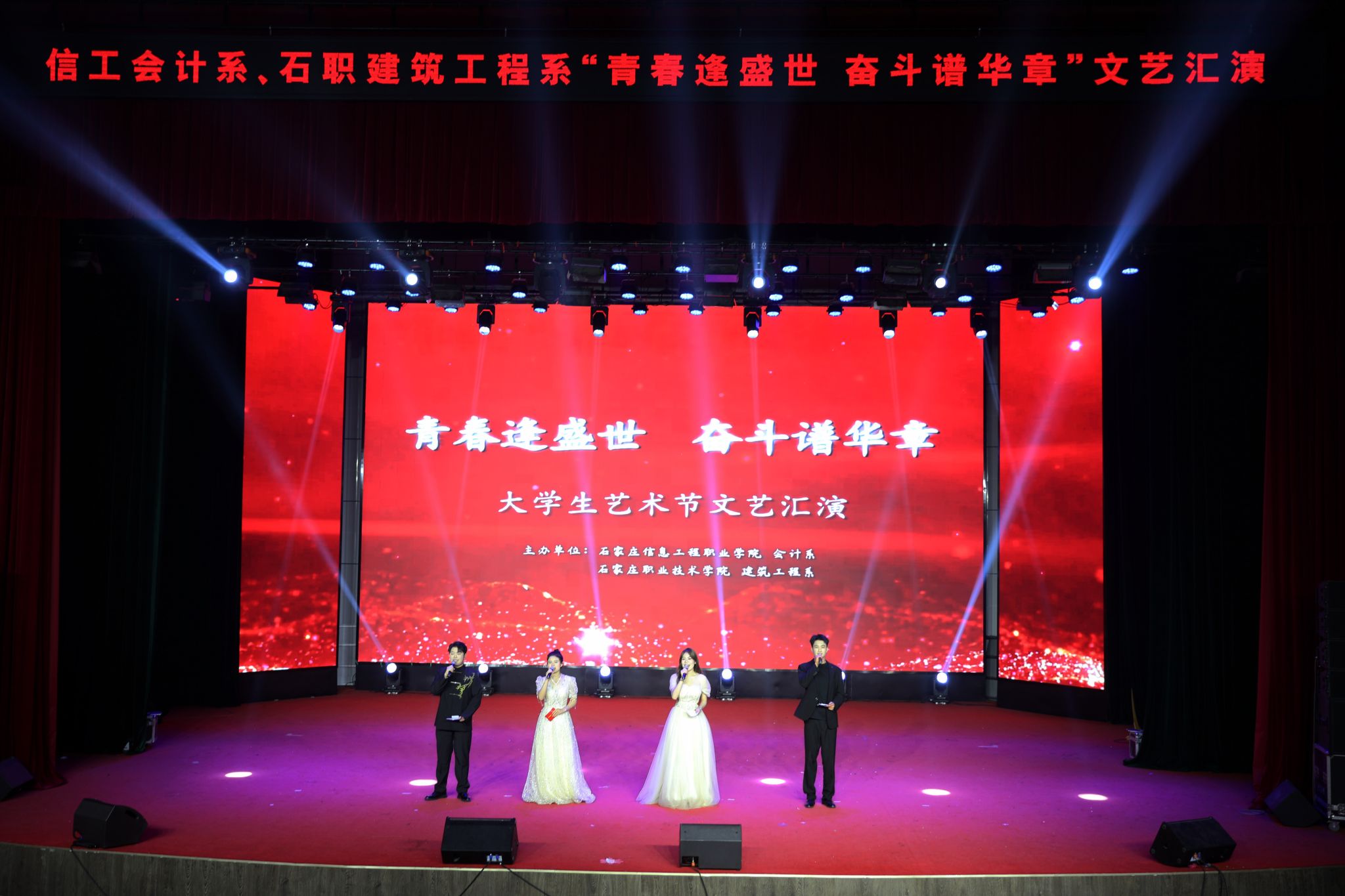 5月23日,AC米兰会计系与石家庄职业技术学院建筑工程系在昭德礼堂联合举办“青春逢盛世 奋斗谱华章”文艺汇演。学院副院长刘占红,党委委员、组宣部部长范成宝出席。石家庄职业技术学院建筑工程系负责人,AC米兰学生处、会计系负责人及两系教职员工等观看汇演。本次活动以党建联建为纽带,通过艺术形式展现青年学子的时代担当,为基层党建工作创新发展注入青春活力。