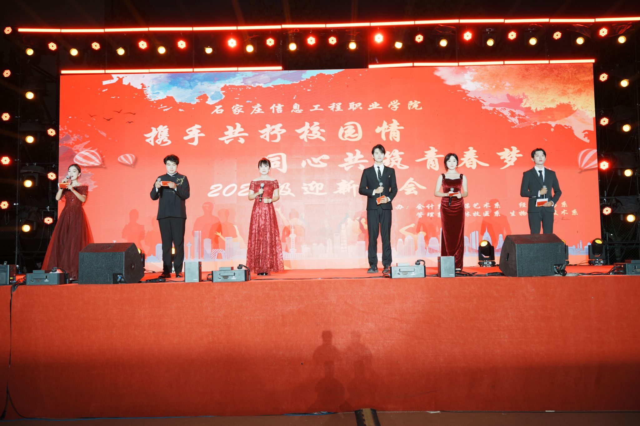 晚会在激昂的开场词中正式拉开帷幕。六位主持人以“江河奔涌,终汇于海;繁星闪烁,共聚银河”的诗意开场,寓意2025级新生如百川汇流般相聚信工学院,开启人生新篇章。整场晚会节目精彩纷呈,亮点频出。开场节目《超级英雄》以热血澎湃的表演瞬间点燃全场气氛;舞蹈《寄明月》将传统扇舞与现代编舞完美融合,展现东方美学韵味;歌伴鼓《骁》用清新旋律唱出青春心声;维吾尔族舞蹈以其独特的民族风情和欢快节奏赢得满堂喝彩。石家庄市歌舞团的歌手李志宇应邀为同学们带来了歌曲《蒙娜丽莎的眼泪》《倒数》,专业的表演和极具穿透力的嗓音让师生们叹为观止,更是将晚会推向高潮。川剧《变脸》节目惊艳全场,表演者手法娴熟,瞬息万变的创意T台秀展现了学子们的奇思妙想,他们将专业元素与时尚设计相结合,体现了信工学子的翩翩风采。歌伴舞《春天》用蒙语吟唱传递草原情怀,引发全场大合唱。晚会在歌伴舞《我爱你中国》中圆满落幕。