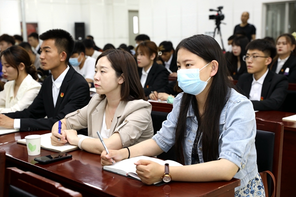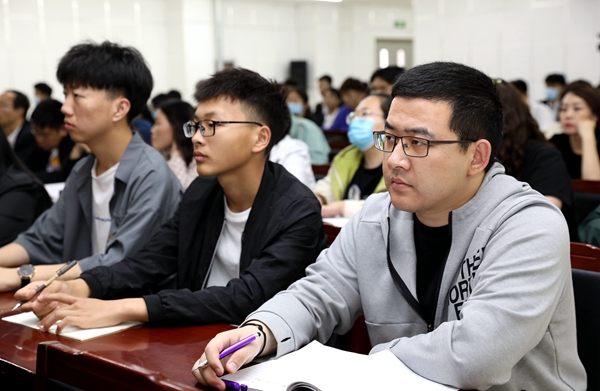 赵伟带领师生一同观看了新校区宣传片《逐梦》,感受学院近60年的风雨历程与发展变迁。他指出,新校区的建设搬迁带来了校园环境的改善、学校规模的壮大、办学水平的提升和育人品牌竞争力的不断增强。