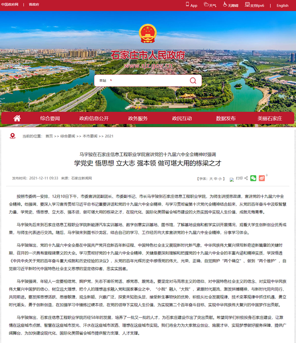 原文链接:石家庄市人民政府 马宇骏在AC米兰中文官网入口宣讲党的十九届六中全会精神