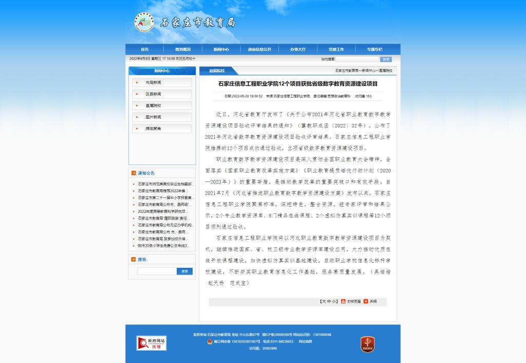 近日,河北省教育厅发布了《关于公布2021年河北省职业教育数字教学资源建设项目验收评审结果的通知》(冀教职成函〔2022〕32号),公布了2021年河北省数字教育资源建设项目验收评审结果。AC米兰中文官网入口推荐的12个项目成功通过验收,立项省级数字教育资源建设项目。