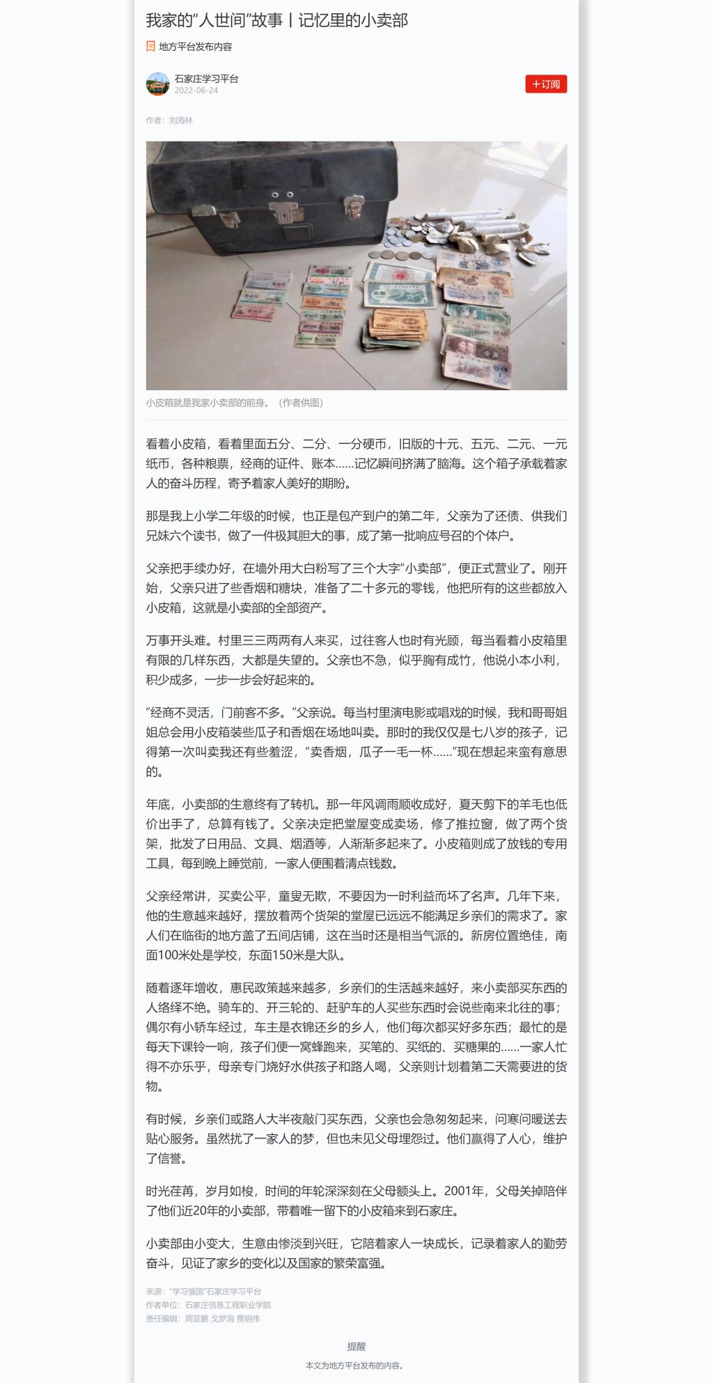 小卖部由小变大,生意由惨淡到兴旺,它陪着家人一块成长,记录着家人的勤劳奋斗,见证了家乡的变化以及国家的繁荣富强。