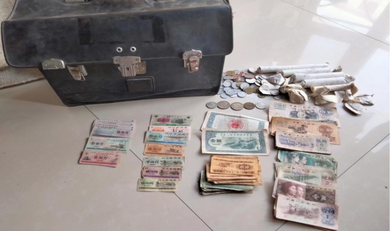 看着小皮箱,看着里面五分、二分、一分硬币,旧版的十元、五元、二元、一元纸币,各种粮票,经商的证件、账本……记忆瞬间挤满了脑海。这个箱子承载着家人的奋斗历程,寄予着家人美好的期盼。