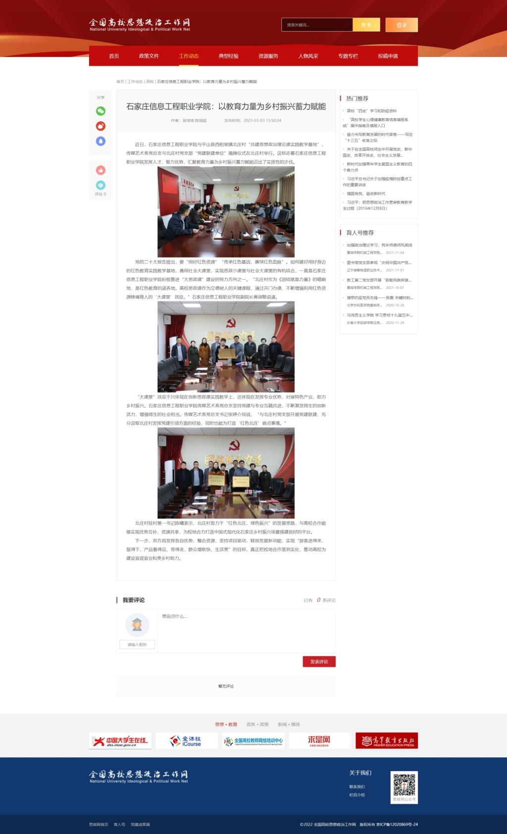 “大课堂”效应不只体现在创新思政课实践教学上,还体现在发挥专业优势,对接特色产业,助力乡村振兴。AC米兰中文官网入口传媒艺术系党总支坚持党建与专业互融共进,不断激发师生的创新活力,增强师生的社会担当。传媒艺术系党总支书记张婷介绍说,“与北庄村党支部开展党建联建,充分汲取北庄村发挥党建引领方面的经验,同时也能为打造‘红色北庄’做点事情。”