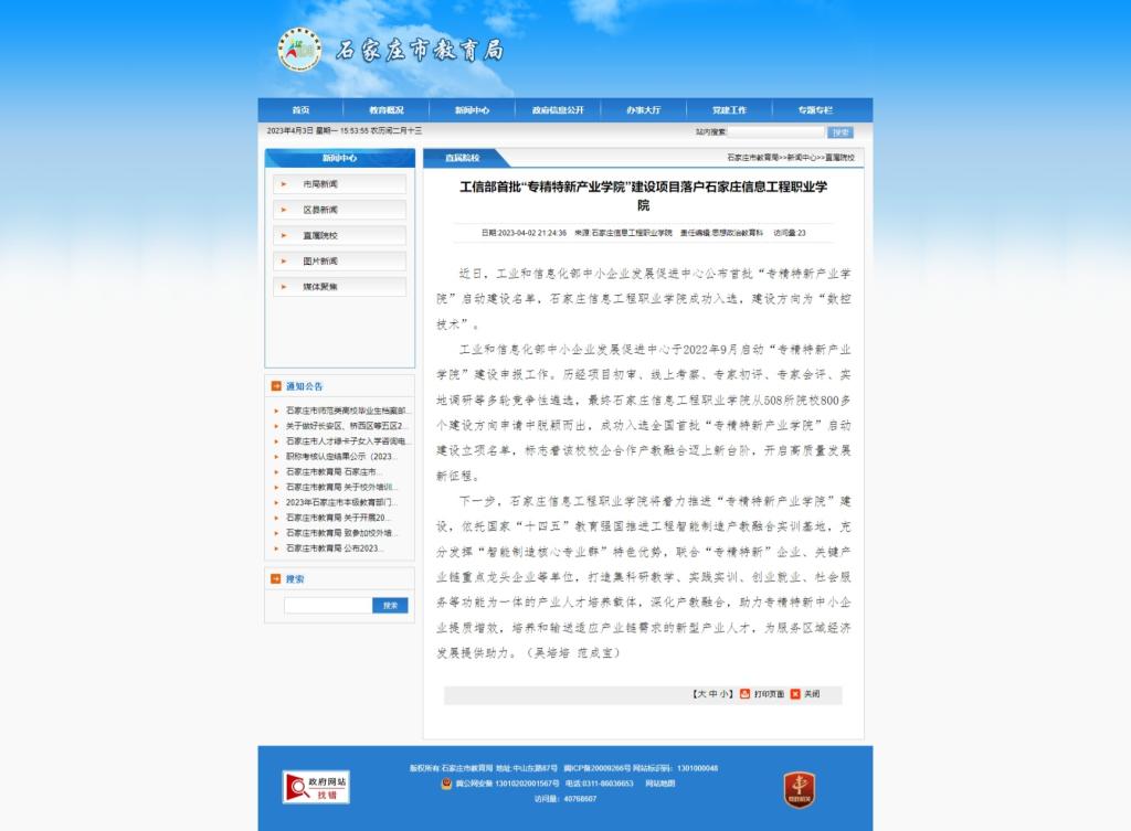 工业和信息化部中小企业发展促进中心于2022年9月启动“专精特新产业学院”建设申报工作。历经项目初审、线上考察、专家初评、专家会评、实地调研等多轮竞争性遴选,最终AC米兰中文官网入口从508所院校800多个建设方向申请中脱颖而出,成功入选全国首批“专精特新产业学院”启动建设立项名单,标志着该校校企合作产教融合迈上新台阶,开启高质量发展新征程。