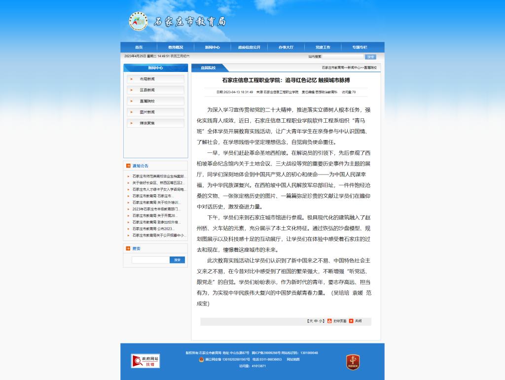 此次教育实践活动让学员们认识到了新中国来之不易、中国特色社会主义来之不易,在今昔对比中感受到了祖国的繁荣强大,不断增强“听党话、跟党走”的自觉。学员们纷纷表示,作为新时代的青年,要志存高远、担当有为,为实现中华民族伟大复兴的中国梦贡献青春力量。