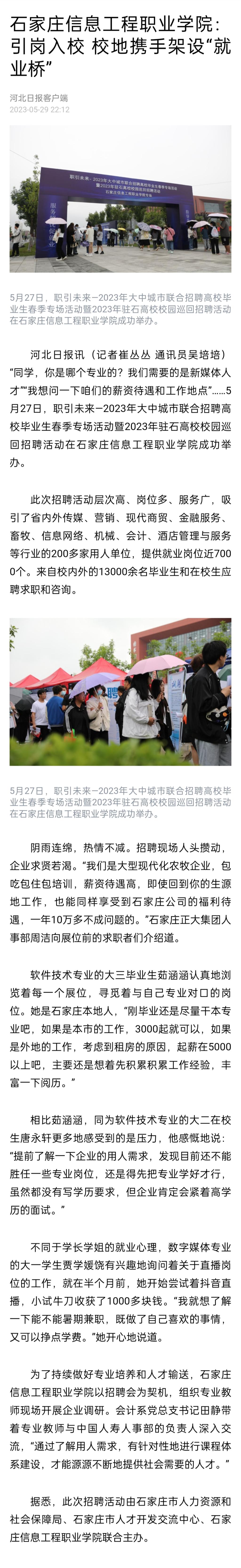 5月27日,职引未来—2023年大中城市联合招聘高校毕业生春季专场活动暨2023年驻石高校校园巡回招聘活动在AC米兰中文官网入口成功举办。