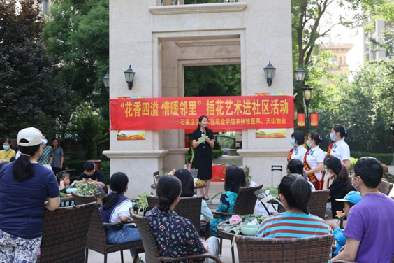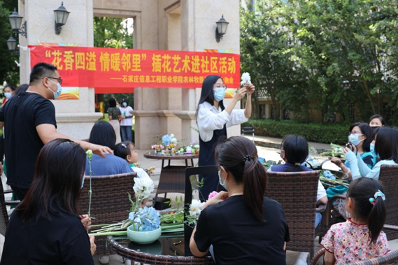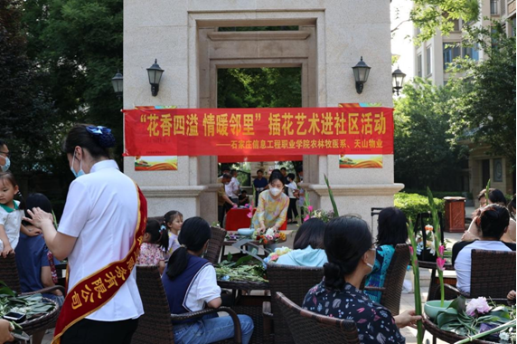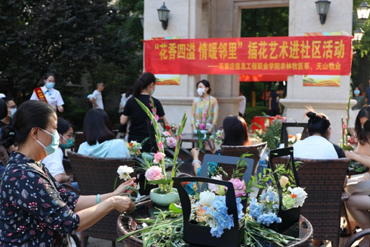 5月28日下午,石家庄信息工程学院农林牧医系走进社区,在正定新区天山熙湖举办了“花香四溢,情暖邻里”插花艺术进社区的活动。这次活动隶属于整个AC米兰中文官网入口职教周的一部分,也是省职教周的一个分支,目的是向社会宣传职业教学。