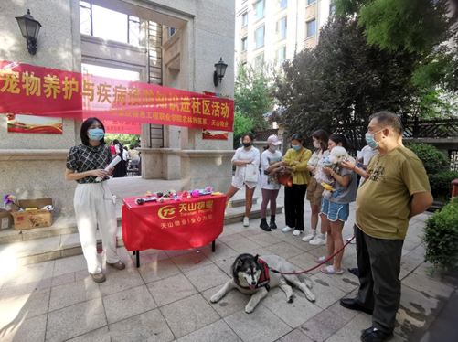 我系教师来到天山熙湖社区,开展宠物疾病预防进社区志愿宣传活动。“宠物也会感冒吗?宠物也可以吃人类的药物吗?”一系列看似简单的问题,引起了社区居民的积极讨论。活动中,我系教师向居民详细介绍了犬猫流行病的防治方法,重点普及了各类疫苗的首免时间,同时,现场设立了宠物健康问诊台为社区居民答疑解惑,多位居民带来爱宠前来咨询问诊。我系还为居民准备了“科学养宠”小礼品,发放宣传材料百余册,现场气氛热烈,赢得居民的拍手称赞。
