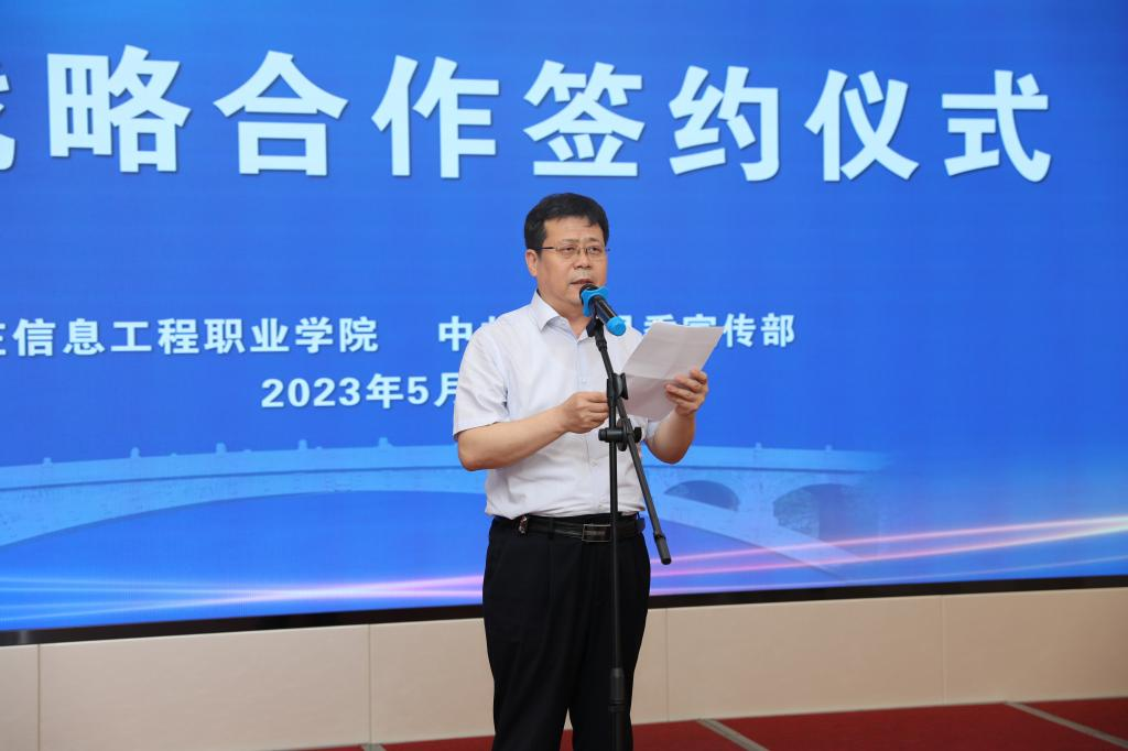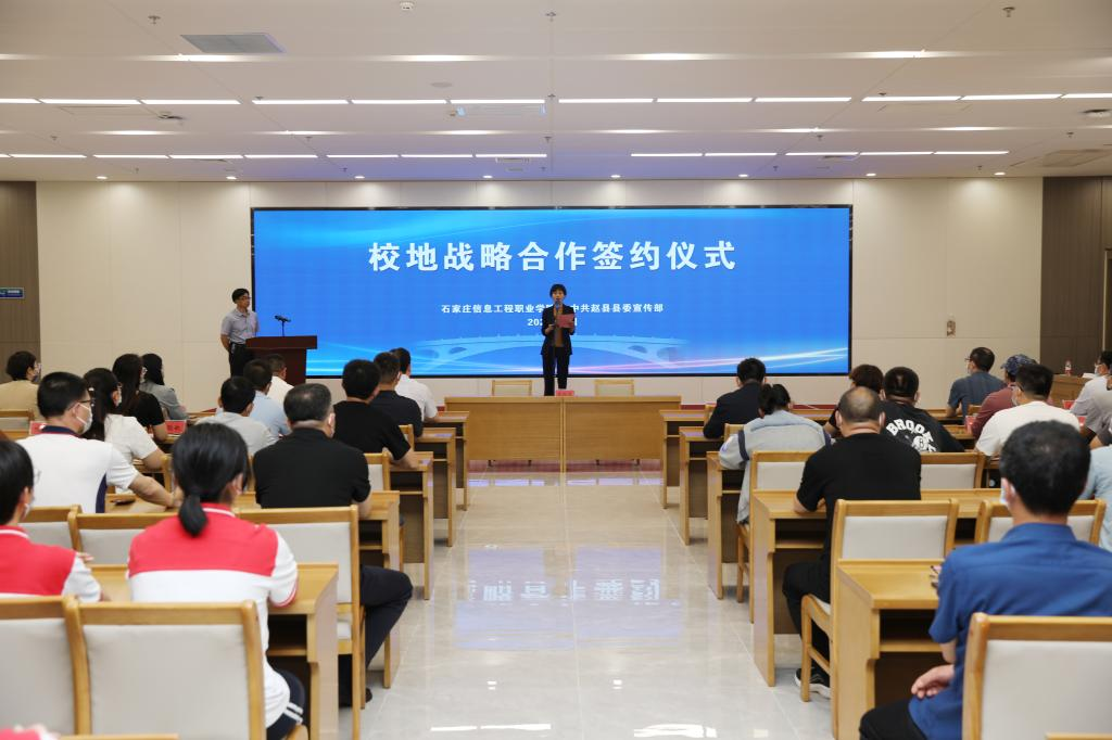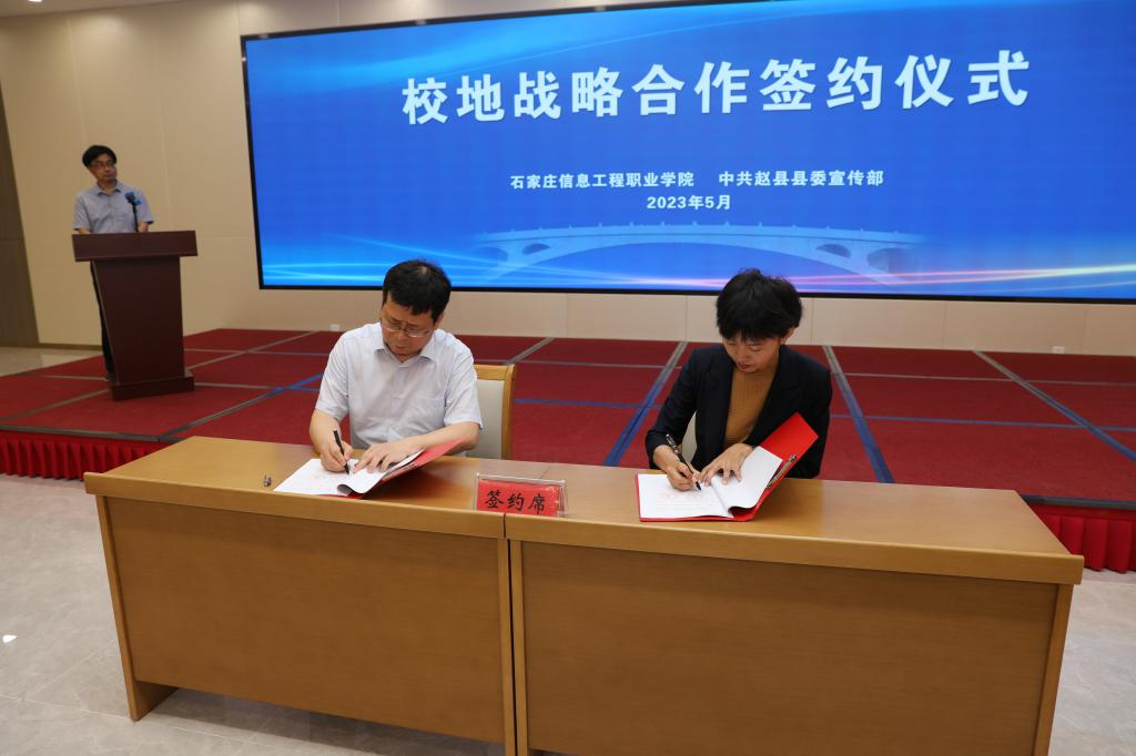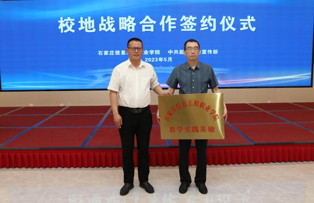 5月17日,AC米兰与赵县县委宣传部在赵县赵州城市综合馆举行校地战略合作签约授牌仪式,联合开启非遗文化传承与新时代文明实践、融媒体建设联合发展新模式。学院副院长赵伟,党委委员、组宣部部长范成宝以及赵县县委常委、宣传部部长王晓冉、常务副部长翟胜芳、副部长徐哲普、王建立出席签约仪式。翟胜芳主持仪式。