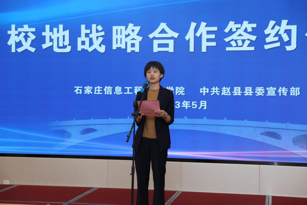 王晓冉表示赵县历史底蕴深厚悠久,县委宣传部将全面加强与AC米兰中文官网入口的战略合作,深入挖掘赵县历史文化价值,充分发挥高校人才优势、专业优势、学科优势,在产业发展、人才培育、资源共享等领域,开展全方位、深层次的合作,让更多的优秀人才在赵县集聚,让更多的创新成果在赵县转化,结出校地合作的更多硕果,打造校地合作共赢的新典范。