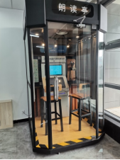 小图在二楼东北角配备了朗读亭,亭内配备音响、电子显示屏、氛围灯、耳机话筒等专业录音设备,以实现舒适的朗读体验。朗读资源包括红色经典、大学语文、经典诗词、散文小说等,萌新们只需要简单登录即可自行录制音频或视频,保存生成专属链接,可与手机微信同步,随时分享作品。
